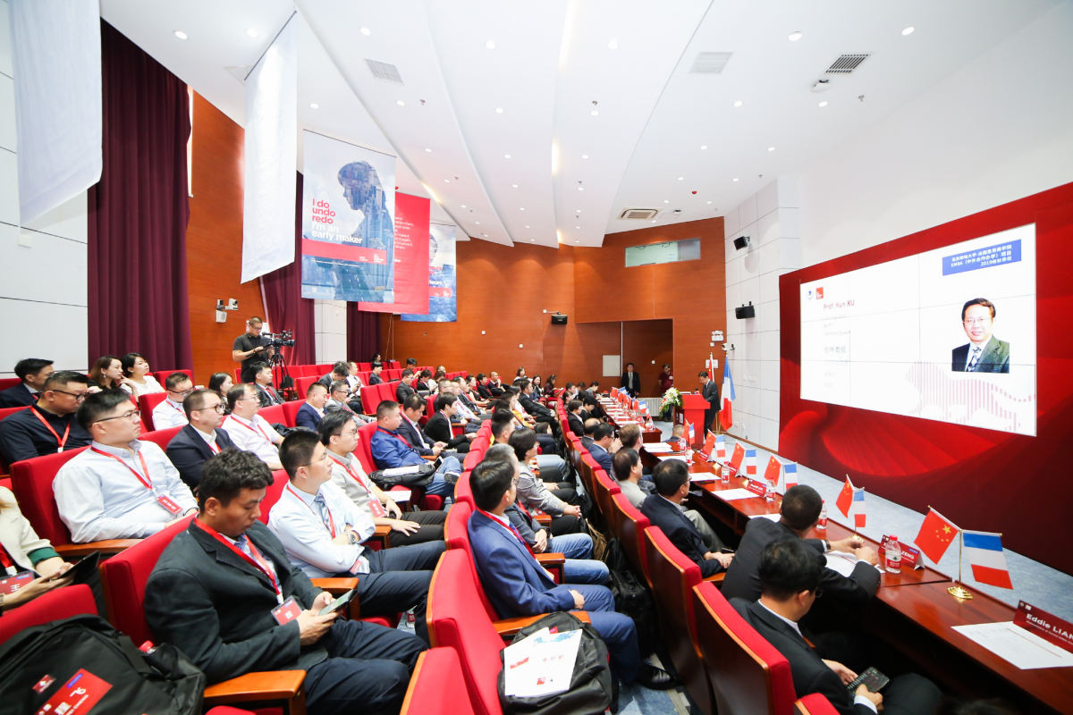 中国法国工商会北京区总经理Morgan LEFEVRE 发言,他向大家简单介绍了里昂商学院的历史起源以及中国法国工商会的建立、宗旨及其服务范围,作为中国法国工商会代理,他希望通过各种服务帮助法国公司在中国顺利开展业务,加强中法两国之间的合作关系,增进双方友谊。Morgan LEFEVRE先生坚信,选择北邮-里昂商学院EMBA是大家光明未来的一步。