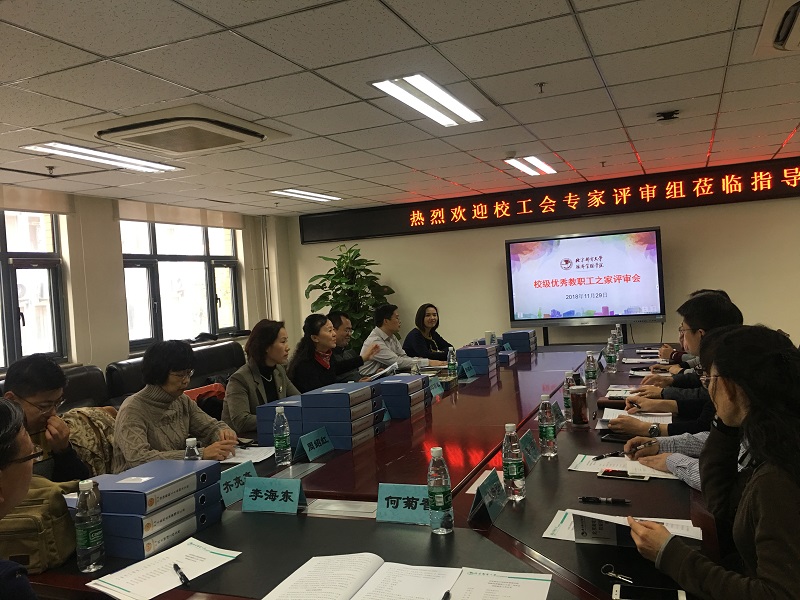 2018年11月29日下午,由校工会常务副主席邓丽敏带队,校工会副主席许琼来,后勤处副处长、工会主席李忠庆,数字媒体与设计艺术学院党委副书记、工会主席齐亮亮,网络教育学院党委副书记、工会主席常征,校工会老师宋秀华、周绍红组成的建家升级检查组,莅临9001jcc金沙以诚为本对“优秀教职工之家”建家升级工作进行检查评审。9001jcc金沙以诚为本党委书记胡启镔,党委副书记、工会主席宋娟,副院长马晓飞,工会副主席范琴、孙皓,工会委员及工会小组长参加了评审会。