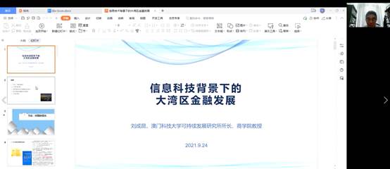 会议伊始,王欢院长、杜悦副主任和刘成昆教授分别致辞,表达了对此次项目的高度重视,学校港澳台办组织“港澳与内地大中小学师生交流计划”旨在加强金沙官网与港澳高校在人才培养和科学研究方面的交流与合作,希望通过此次线上访学项目切实提高澳门师生对内地新兴信息技术的应用与数字经济的发展的认识,促进交流,增进友谊。随后,刘成昆教授针对信息科技背景下的大湾区金融发展这一主题展开学术报告,分析了大湾区“4+9”城市发展的态势,使双方师生有了全面且深入的了解。最后,由康俊主任进行了项目情况的汇报,由谢智勇副院长进行了会议总结。